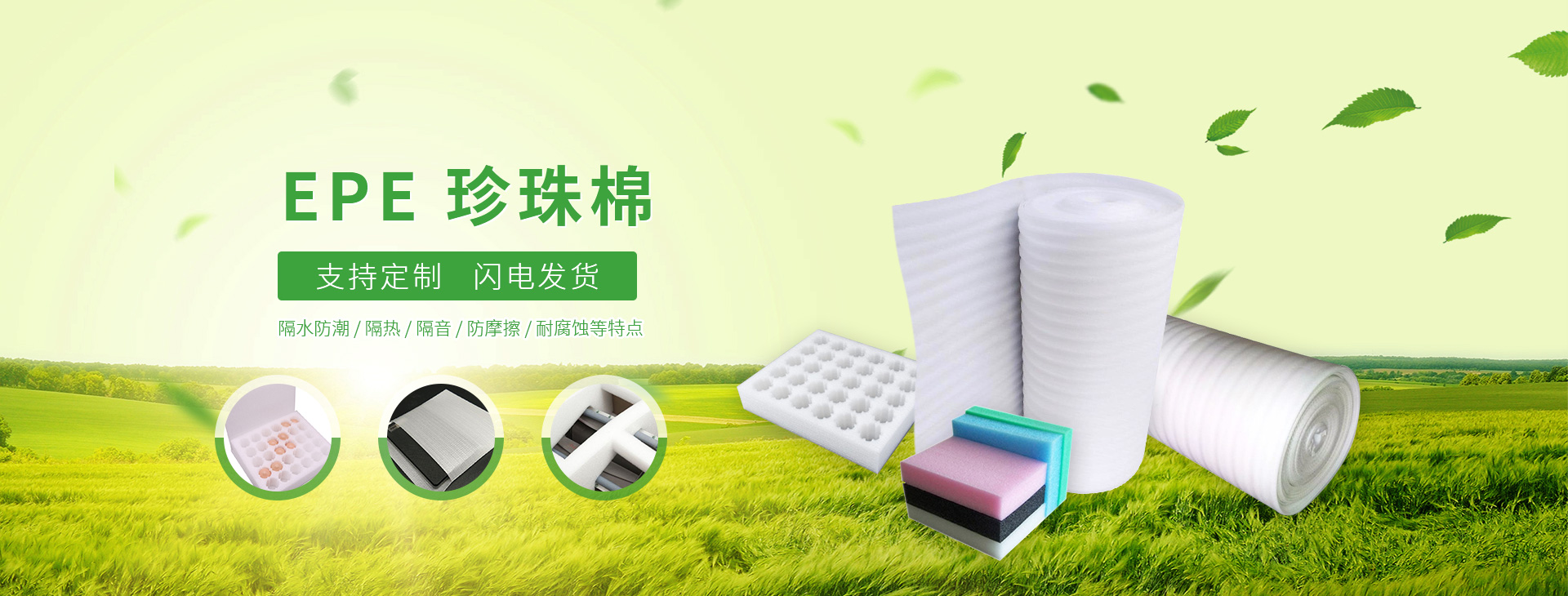 公司主要產品包括:PE纏繞膜、氣泡膜、拉伸膜、珍珠棉(EPE)、高低壓包裝膜、包裝袋等;可加工EPE珍珠棉單片(0.5-10mm)、EPE復合片(10-80mm);氣墊薄膜裁片、制袋;高低壓平口袋、方底袋等各類塑料包裝產品。本廠交貨及時,品質穩定,服務周到,受到客戶的信賴。